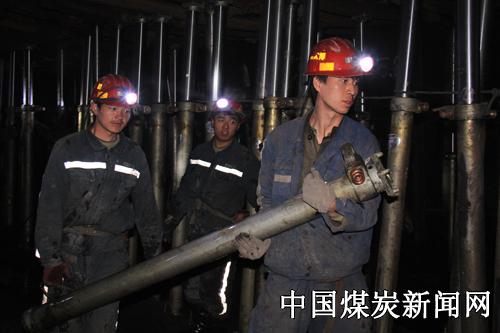 ![]() 安装现场,综采队职工在回收单体液压支柱、工字钢钢梁和安装掩护式液压支架