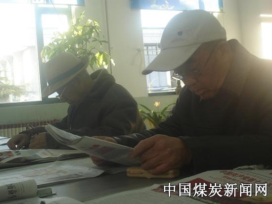 11月12日,几位退休老工人在阳煤集团二矿图书馆阅览室阅览报纸,关注学习党的十八大报告。