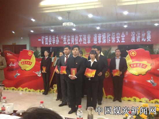 11月13日,一矿团委举办了“我在岗位不违章,遵章操作保安全”演讲比赛,通风工区选手田旭亮荣获一等奖。