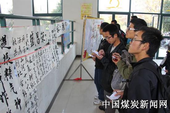 【本网讯】 11月15日,矿业工程学院团委于梅三楼大厅举办了以主题为“展示新成就,庆祝十八大”的“歆竹杯”首届书法大赛。以此来热烈庆祝十八大的胜利召开,用书法传播文明,开展爱国爱党教育。