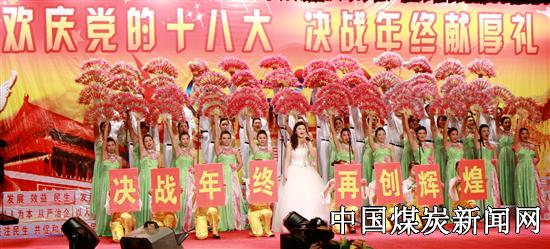 11月15日,山东能源枣矿集团柴里煤矿隆重举办?欢庆党的十八大、决战年终献厚礼·红歌比赛。全矿广大共产党员和一线矿工们欢聚一堂,以歌咏志,用饱满的热情和嘹亮的歌声,表达了煤矿工人庆祝十八大胜利闭幕的喜悦心情和开拓进取、奋发向前冲刺全年任务目标全胜的昂扬斗志。