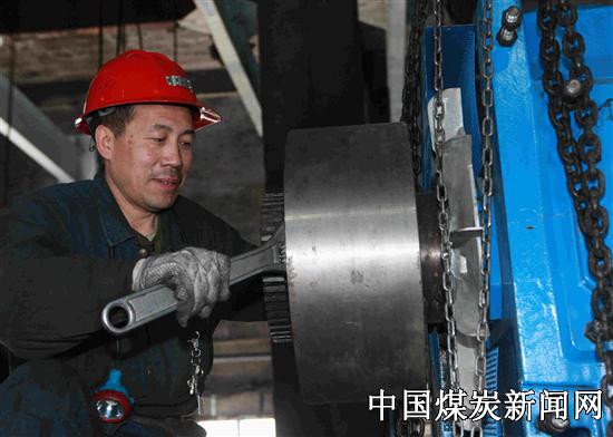 图为:运输队队长徐恒山一丝不苟检修机电设备,摄影:赵军