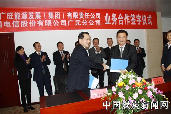 【本网讯】11月20日,川煤广旺公司与中国电信广元分公司举行业务合作签字仪式。广旺公司董事长、党委书记胡文,中国电信广元分公司党组书记、总经理杨波出席签字仪式。
