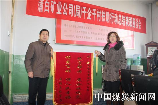 该公司领导和参加扶助行动的各单位,蒲城、白水两县扶贫办、受助的6镇9村负责人等共同回顾总结了三年来扶助行动取得的成绩、体会和结下的深厚友谊。会议还对公司(局)三年来在“千企千村”扶助行动中做出贡献的优秀扶助单位和优秀驻村干部予以了表彰奖励。蒲城县扶贫办还现场赠送了锦旗“扶贫帮困,展企业风范;情系百姓,某人民幸福”。 蒲白“千企千村”扶助行动按照省委省政府和陕煤化集团的安排部署,对口扶助蒲城、白水两县6镇9村,规划帮扶23个项目。从2010年7月开始,蒲白各级领导高度重视,科学谋划缜密安排,遵循抓好“五个落实”、 把好“四个关”、实施“五个要点”、实现“两个目标”的“5452”扶助工作法,扎实开展工作。截止11月底,已完成9村21个项目,投入资金360万元。三年来,公司(局)以项目带动扶贫,诚心诚意不作秀,推动扶助行动顺利开展。加强对扶贫资金支出的严格审查监督;不断创新扶贫开发方式,通过开展智力扶贫、科技扶贫、产业扶贫,把扶贫帮困、子女助学、协议工招收等工作把简单的“输血”变成自身的“造血”。并帮助当地村民群众建立起了科学的管理制度和长久的扶贫机制,让地方政府和受扶助村镇吃上“定心丸”,取得实实在在的扶助成果。 公司(局)通过“千企千村”扶助行动,承担起了一方社会责任,实现了优势互补和企地双赢,达到了共同发展,树立了企业的良好社会形象。受助村镇的干部群众一致感谢党的政策好,感谢陕煤化集团和蒲白矿业公司的支持帮助,这样的扶贫不仅是物质的扶贫,更是精神和思路的扶贫,使他们脱贫致富,过上了好日子。他们表示,一定会沿着陕煤化集团和蒲白矿业公司给他们铺设的致富道路,为他们规划的发展项目和目标,努力实现富裕文明的小康生活。