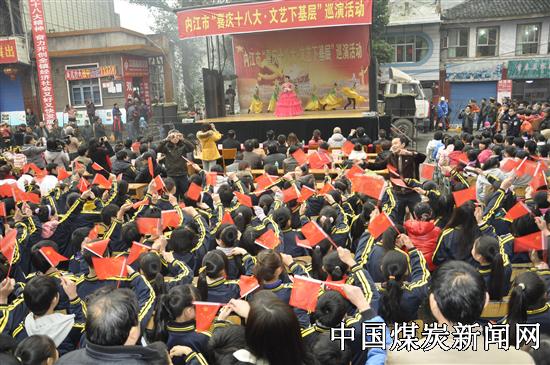 本网讯 12月11日,由内江市委宣传部、内江市文化广播影视和新闻出版局、内江市文化艺术界联合会主办;内江市文化馆、川剧团、大千演艺公司以及各县宣传部、文体广新局承办的“喜庆十八大,文艺下基层”巡演活动暨首场启动仪式在川煤集团威达公司威远煤矿中心球场隆重举行。
