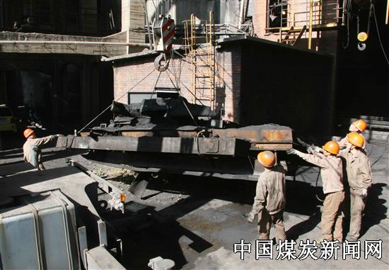 施工过程中,参战职工团结一心,紧密配合,严格按照安全施工措施施工,克服了旧103#给煤机体型庞大,重达8吨多,又处在原煤仓下,场地狭窄,各种电缆交错,吊装不易等诸多困难,经过十二小时的努力,顺利地完成了本次工作任务。图为正在拆除旧设备。