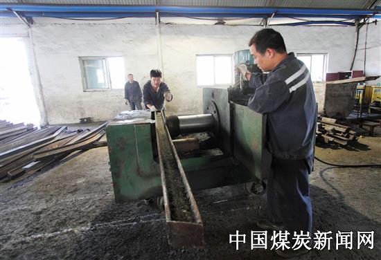 任楼煤矿坚持对工字钢、U型钢、轨道、40T溜槽进行回收复用,减少了材料投入,提高钢轨复用效率,实现了节支降耗。图为该矿坑代科修旧利废组正在修复回收上来的工字钢。(董志红摄)