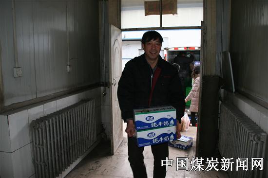 12月22日清晨,大峰矿采煤二队班前会刚结束,员工们就欣喜地接到了礼物。这两天正值该队O102-604工作面收尾,时间紧劳动强度大,该矿女工委组织了爱心慰问活动,专程送来了260份汉堡包、冰红茶和牛奶。用温暖关爱为一线员工决战助阵,受到欢迎。