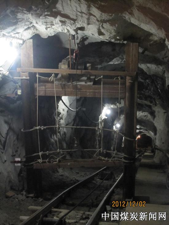 宝鸡市华仁二里河金矿打柴沟采区1376至1340中段全长100米的斜井已于去年就已经全面完成,由于一直没有正式进行斜井原矿的提升运输生产,因此在斜井没有安装安全门。近期为了提高井下原矿供应量,增加斜井的原矿运输生产,首先就要解决安装斜井安全门,避免斜井“飞车”事故的发生,才能保证斜井的安全提升运输生产,该采区主任彭洛宏和安全电工赵梦慰多次深入1340中段斜井现场实地考察,根据井下现场实际情况相互经过几次研究斜井安全门的设计方案,目前已确定设计的斜井安全门主要由:槽钢、钢管、减速器、电机、钢丝绳、尼龙绳、行程开关、感应系统装置等组成,最后终于在11月25日由采区安全电工赵梦慰自行设计的斜井安全门正式投入使用。