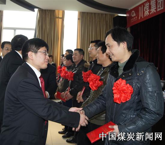 公司领导王才双、张永、邬宗文、周吉平、王俊宏、国民利、龚先华,杨发燕、文德才、林志洪、杨义刚、何平均及总部机关部门主要负责人,各二级单位党政主要领导、职工代表,受到表彰的2011年度先进个人等共计70余人参加会议。 公司党委副书记、纪委书记、工会主席张永主持会议。 此次会议的主题是:贯彻落实川煤集团党代会、工作会精神,突出经济效益中心,以科学发展观为指导,以提升企业生产总量、产品质量和效益效率为根本,以强化各项管理为重点,以推进内部改革为动力,以建设企业文化为活力,广泛开展节能降耗工作,艰苦奋斗,创新思路,扎实工作,夯基固本,加快发展,全力以赴完成2012年各项目标任务,以优异的成绩向党的十八大献礼。 公司董事长、党委书记、总经理王才双作了题为《夯基础 抓起步 缩差距 树形象 为紧跟川煤发展步伐实现年度工作目标而努力奋斗》的主题报告。 《报告》全面总结了2011年的工作,2011年全公司生产煤炭产品38.74万吨,同比增加15.05万吨,超额完成川煤集团下达给公司的35万吨任务。其中,威远煤矿生产烟煤7.34万吨,同比增加1.49万吨;叙永煤矿生产无烟煤27.46万吨,同比增加9.98万吨,提前两个月超额完成全年生产任务。蓉兴公司生产元明粉24.37万吨,同比增加2.57万吨。全年生产精煤3.3万吨,未完成川煤下达指标。公司所属煤矿全年掘进总进尺14512米,同比增加2260米。其中,威远煤矿进尺2490米,同比减少808米;叙永煤矿进尺7574米,同比增加1928米;威鑫煤业进尺4448米,同比增加1140米。蓉兴公司进尺6350.7米,同比增加700.7米;超额完成川煤集团下达公司12500米的指标任务。2011年,公司没有突破川煤集团下达公司的安全控制指标,同比减少2起2人。 ![]() 公司党委副书记、纪委书记、工会主席张永为先进生产者颁奖