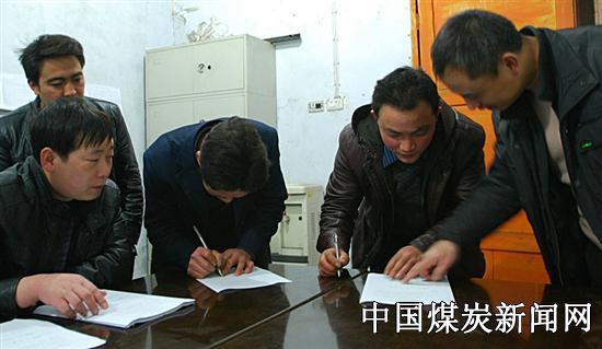 本报讯 2月上旬,比德公司组织活动,即:党委书记、综治办主任方鹏飞,与8位党支部书记签订《社会治安综合治理目标管理责任书》、《禁毒工作责任书》;总经理周维新与8位党支部书记签订《消防工作责任状》;8位党支部书记与所在支部全体职工签订《禁毒保证书》。 这是比德公司党委连续六年与基层签订“四书”,将各项硬性指标进行了量化。如《社会治安综合治理目标管理责任书》第12条规定:“干部职工的违法犯罪不超过1%,对违法违纪干部职工查处率100%,职工群众的安全感达到90%以上”;《禁毒工作责任书》第10条规定:“每出现一名新增涉毒人员,对责任单位处罚5千元。其罚款额,党政领导各占20%,分管领导各占20%,其他责任人和保卫部长各占30%和10%。”图为综采工区党支部书记毛景海(右),正在与前来上中班的职工签订《禁毒保证书》。高毕勇 摄影报道