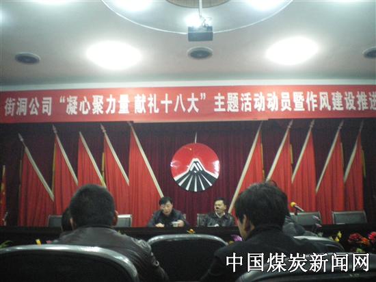 2月16日下午3点,湘煤街洞公司在公司三楼会议室召开“凝心聚力量 献礼十八大”主题活动动员暨作风建设推进大会,100多名机关工作人员及中层领导参加了大会,会上,街洞公司党委书记、纪委书记李和平传达了2月13日召开的郴州市第四届纪委第二次全会暨全市反腐败工作和作风大整顿动员大会会议精神,并宣读了“五个一律免职” 即 “利用工作之便索拿卡要的一律免职;参与赌博的一律免职;醉酒驾驶的一律免职;违反规定大办婚丧喜庆事宜的一律免职;上班时间打牌、下棋、打麻将、炒股票、玩电脑游戏或到歌舞厅、洗浴场所休闲娱乐的一律免职”。 再次吹响公司作风建设“集结号”。