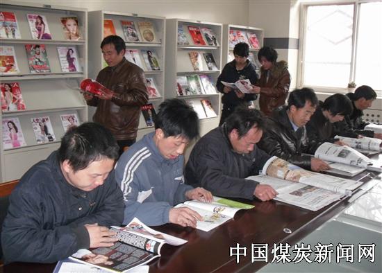 图片为2月18日,该矿职工在“职工书屋” 阅览室读书看报场景