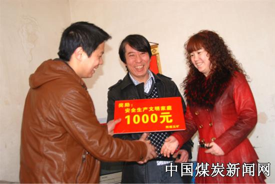 按照集团公司的安排,阳煤集团五矿对评选的安全生产文明家庭进行表彰,并举行了颁奖仪式,颁发了安全生产文明家庭奖牌,并为评选的安全生产文明家庭每户奖励现金一千元,奖海尔全自动洗衣机一台。评选的安全生产文明家庭代表王冬敏上台做了发言,苏村社区主任翟玉珊代表各社区进行发言。