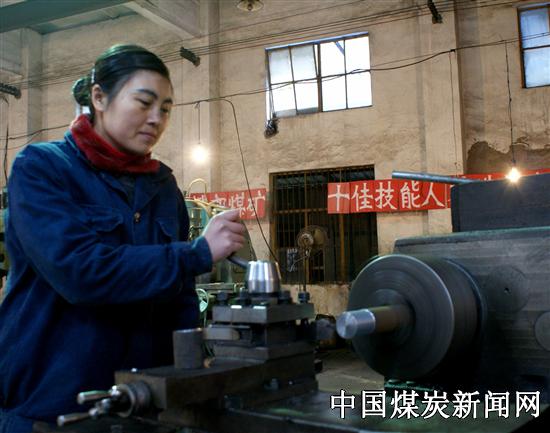 川煤集团达竹公司斌郎煤矿机电队精工班班长赵传碧,一名极为普通的钻工,她工作扎实、技术精湛、乐于奉献。参加工作24年来,她自我加压、自我提高,熟练掌握了车床、钻床、刨床、铣床和电工、钳工、铆工、焊工等多种技术,她坚持岗位“手指口述”安全确认,屡屡满完地了综采、综掘机关键零配件的加工制作任务,连续24年保持了设备无故障、无隐患、无事故,班组和自身无违章、无轻伤以上的事故发生,多次被矿评为岗位能手、技能人才、优秀人才、十佳班组长、三八红旗手和安全先进个人等荣誉称号,彰显了一名普通女工火热的情怀和对本职工作执着的爱。图为赵传碧精心加工综采机零配件时的情景(潘广平 摄影报道)