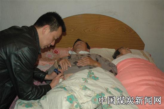 每天早晨六点半,他在一阵急促的闹铃声中惊醒,来到一墙之隔的父母房间里,打开药箱,将装有胰岛素的针管拿到床边,轻轻叫了一声:“爸爸,给你打针了”,约三分钟,打完针,将针管装好,来到厨房,洗刷炊具,舀了两瓢水在锅里,送上电,又回到父母的房间,给母亲穿衣服、穿裤子,将骨瘦如柴的母亲抱到客厅的椅子上,又去给身体肥胖的父亲穿衣服、穿裤,“爸爸,你站直了,看你的裤腿都扭到后面去了”,何建民一边对父亲说,一边弯下腰给父亲理裤腿,穿完衣裤,将父亲扶到客厅,打开电视,他转身来到厨房,端来一盆热水放在母亲的身边,分别给父母洗完脸后,拉着母亲瘦得只剩一张皮而且关节已萎缩的手,仔细洗着,随后又给父母仔细梳理头发。他端来开水、拿来面包,递到父亲手里,他告诉笔者,打完针20分钟后父亲必须进食,这是按照医生的要求做的。随后又将鸡蛋和牛奶递到母亲手中,一阵忙碌后,他再一次到厨房,将中午父母吃的饭煮在电饭锅里,下班回家做几个菜就可以吃饭了。早晨的一个小时,是他最忙的,除照顾父母外,还要照看上小学的儿子,处理家务事后,匆匆忙忙赶到工会上班,肩负生产组组长的职责。