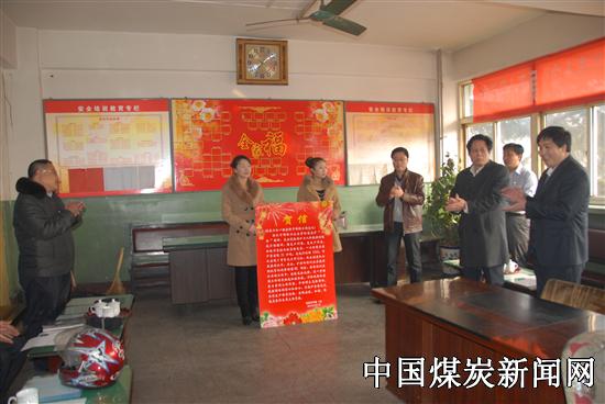 本网讯(特约记者胡九潭)2月1日,阳煤集团五矿党委副书记、工会主席周海贵,矿劳动竞赛委主任、副总工程师马德胜一行代表矿党政领导和矿劳动竞赛委员会,对综采二队一组生产创水平送贺信。