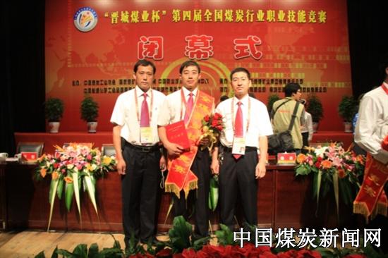朱海强多次参加矿及集团公司举办的技能大赛,并在大赛中取得骄人成绩。在2011年龙矿集团暨烟台市职工技能大赛中,荣获“支护工”第一名。代表集团公司和山能集团参加“晋城煤业杯”第四届全国煤炭行业职业技能大赛取得支护工第十四名,荣获“全国煤炭行业优秀技术能手”称号。为此,他获得了2011年度梁家煤矿劳动模范、龙矿集团十佳技能标兵称号。 龙矿集团旨在倡树一种“让劳动者受尊重、让技术工人扬名”的新风,自主培养过得硬的技术工人。 图一:朱海强(右三)在龙口经济开发区2011年度总结表彰暨2012年工作动员部署大会上领奖。 ![]() 图二、朱海强(中)和他的助手在“晋城煤业杯”第四届全国煤炭行业职业技能大赛闭幕式颁奖现场(孙世国/摄)