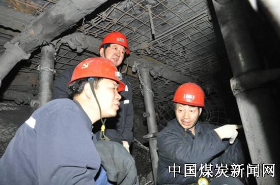 ![]() 白忠胜在11417薄煤层工作面,现场讲解和论证“薄煤层开采工艺”。