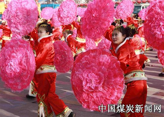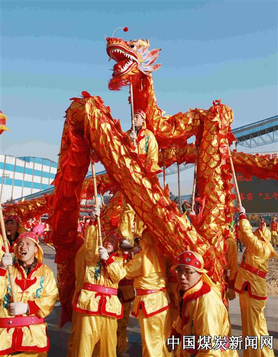 2月4日, 同煤塔山矿办公楼广场,人山人海人们正在观看传统民间艺术舞龙、踩高跷、扭秧歌、抬花轿、等,节日的矿区沉浸在欢乐祥和中。