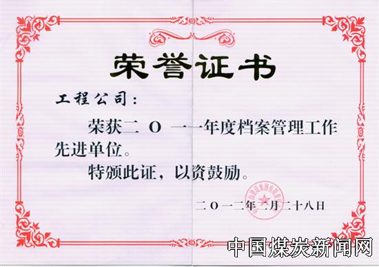 | 中煤矿建工程公司荣获集团档案管理先进单位称号 | |||