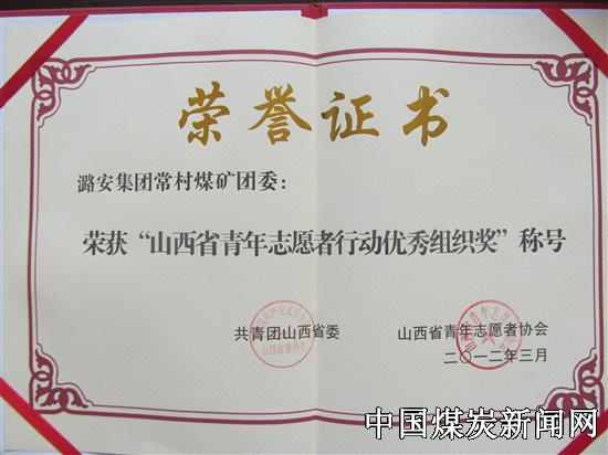 | 潞安集团常村煤矿荣获“山西省青年志愿者行动优秀组织奖” | |||
