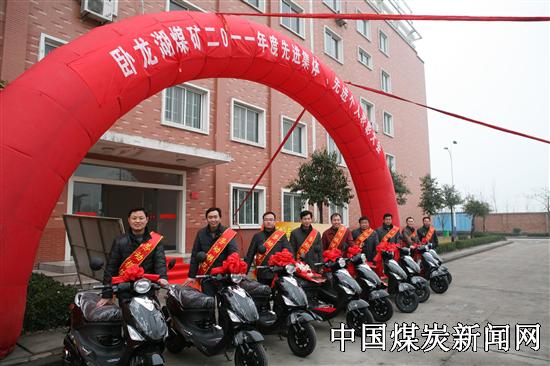 近年来,皖北煤电集团卧龙湖煤矿注重弘扬劳模精神,打造劳模品牌,用劳模效应激励更多的员工全身心地投入到工作中,在全矿区形成了“比、学、赶、超”的良好氛围。图为该矿为劳动模范发放电动摩托车。