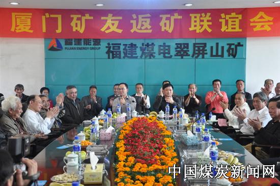 本网讯:3月17日至18日,由厦门老矿友庄树立同志组织牵头的50位厦门矿友返矿联谊会回福建煤电公司翠屏山煤矿举行。在该矿,他们听取了该矿矿长杨纪金关于矿井生产经营情况汇报和“生态型矿井”发展的情况介绍后,与该矿老领导忆往昔、叙友情、谋发展,参观了该矿的空压机房、安全监控中心和人员定位系统等,并在该矿井口合影留念。图为翠屏山煤矿在举行厦门矿友返矿联谊会的欢迎仪式。