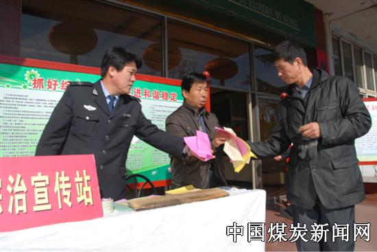 在这次宣传日活动中,阳煤集团五矿高度重视,安排扎实,宣传活动内容丰富,形式多样。矿武装保卫部全体人员在井口为上下井的职工进行咨询服务,积极宣传社会治安综合治理知识和山西省第十次党代会对民主政治建设工作要求等,设立了宣传车,安装了广播喇叭,吊挂综治宣传标语,散发综治宣传资料。在活动现场制作了宣传牌版,发放宣传资料1500余份。为建设平安五矿和法治矿山创造了良好环境。 ![]()