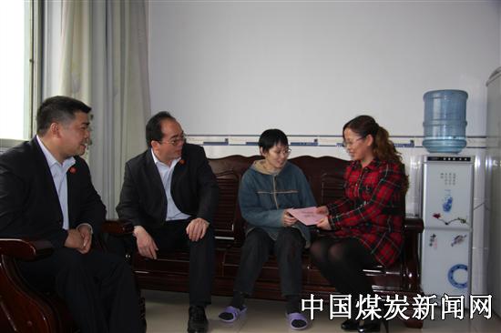 3月28日上午,百色市总工会副主席向彩葵带领市妇联机关干部、右江矿务局工会主席文军及慰问团到塘内煤矿为该矿困难单亲母亲农建东送上慰问品及慰问金。