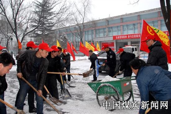 本网讯(特约记者胡九潭)3月4日,一场春雪过后,阳煤集团五矿团委组织青年志愿者,打着团旗开展清雪活动,为全矿职工群众出行创造良好的交通安全环境。