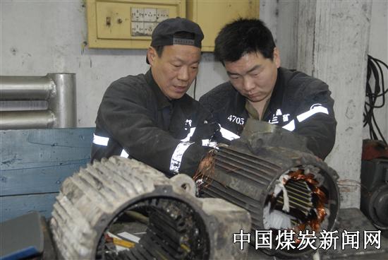 平煤股份十三矿机修厂注重提升青工技术素质,让经验丰富的老党员与青工结成师徒对子,明确双方的权力和义务,让徒弟早日出师。图为3月7日该厂老党员王友好(左一)正在给徒弟传授电机检修技术。通讯员 连进强摄