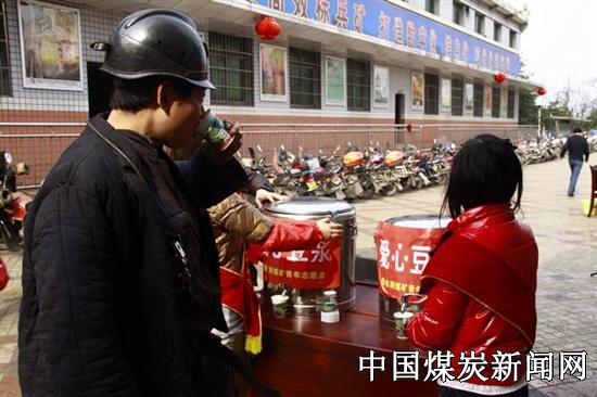 “杨师傅,工作辛苦了,请喝一杯爱心豆浆,祝你身体健康!”、“刘阿姨,你血压偏高,平时少吃动物内脏、蛋黄,多食水果,蔬菜!”……一句句亲切的话语在这里此起彼伏,这是川煤集团广能公司绿水洞煤矿团委开展矿区青年“弘扬雷锋精神,参与志愿服务,共建和谐绿煤”志愿者服务活动的一幕幕。