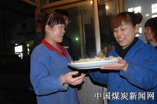 下峪口煤矿选煤厂女工委送“三八”饺子到岗位女工