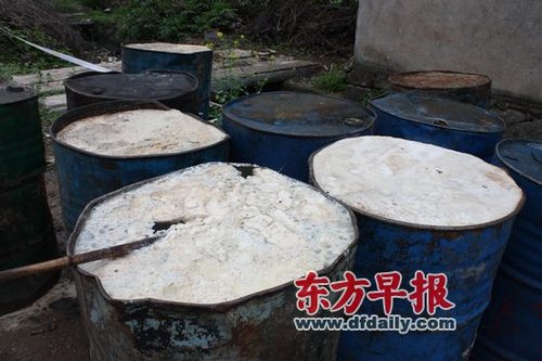 李卫坚用于炼存地沟油的房子外堆满了初炼油,还装了摄像头。 本版图片 早报记者 葛熔金 原料管控防不胜防 销售终端无法检测 “如果炼油的原料仅仅是依靠屠宰场的动物废弃物,或许管控屠宰场会立见成效。但很多黑窝点的地沟油炼制原料非常庞杂,来源防不胜防。”只要能熬油的动物废弃物,很多窝点都会拿来利用。这些动物废弃物可能是来自菜场鸡鸭宰杀后的遗弃物,也可能是被人遗弃不能食用的各类病死、变质和腐败的肉质品,或者用于工业原料的猪皮等物。 由于没有明确的检验指向物,仅仅根据国标进行质检,质检部门也没有办法分辨出“地沟油”,整个销售终端管控变得几乎不可能。在此次查获的一家涉案油脂企业,去年其精加工的地沟油在当地质量监督局的年检中,油品质量被检测为合格。目前尚无对新型地沟油有效的辨别方式,很多食品加工企业在毫不知晓的情况下,将这些油用于食品制作,存在很大的隐蔽性。 3月21日,在公安部统一指挥下,浙江、安徽、上海、江苏、重庆、山东6省市公安机关集中行动,全环节摧毁一个特大跨省新型地沟油犯罪网络。该案中,涉案人利用动物废弃物炼制地沟油,在经过一些油脂公司精加工以后以“牛油”的身份添加至饼干、火锅底料等食品。 不过,案件侦破背后,却也暴露出政府相关部门对新型地沟油源头、终端管控的两难。由于没有明确的检验指向物,质检部门没有办法分辨,且从外观、气味上看经过精加工的新型地沟油几乎能“以假乱真”,堂而皇之进入食品企业。另一方面,屠宰场、菜场宰杀动物后的遗留物,被人遗弃不能食用的各类病死、变质和腐败的肉质品,都可能被用来当做新型地沟油的炼制原料,源头管控相当困难。 “要明确是否为新型地沟油,唯一的方法,只有查实地沟油从动物废弃物收集、炼制到销售的整个环节。”专案组人员说。或许,今后如何在新型地沟油的原料管控以及找出更好的检测办法等方面,都是政府相关部门需要思考的问题。 犯罪网络 历时5个月全环节侦破地沟油案 去年8月,温州乐清市警方在一次走访活动中了解到,该市大荆镇蔗湖村有人私自炼油,臭味四处飘散。随后,警方前往该处调查,发现房内摆放着一台碾压机和几口大锅,锅内是一些动物内脏;角落里摆着数十个塑料桶,里面装着颜色不一的油制品,现场脏乱不堪、恶臭难当。最终,警方以工厂涉嫌生产、销售地沟油,将老板干某和工人罗某、杨某控制,并会同工商部门对加工点生产的1吨涉案“牛油”予以抽样、查封。 在警方对该加工点老板干某的审讯中获悉,干某来自浙江台州,这个加工点是他于2011年2月才开办的,之前他一直在其妹妹位于台州的炼油厂工作。警方进一步调查发现,干某妹妹与杭州萧山区1家油脂公司和安徽人潘续韩生意来往密切,其中与潘续韩的资金来往达500余万元。不过,此后乐清警方在对萧山油脂公司和潘续韩的调查过程当中遇到一些问题,案件一度陷入僵局。 在此情况下,乐清警方将该案上报至温州市公安局,并逐级报至浙江省公安厅。“去年3月,在我们全环节侦办由浙江宁海发端、涉及14个省的‘由泔水油制作地沟油’大案后,具备一些处理该类案件的经验。当乐清上报这个情况后,我们感觉这个背后问题可能非常严重,必须花大力气去侦办。”一名专案组成员表示。 去年10月21日,浙江省公安厅治安总队召集温州、杭州、金华、嘉兴、台州和宁波等地治安支队的主要领导,在乐清召开专门协调会。会上,警方明确这种由动物废弃物炼制的油脂属于新型地沟油,各地对此要重点打击和取缔,同时专门成立“10·21”专案组对此类行为进行针对性侦查。 去年11月中旬,警方调查发现,潘续韩将熬制、收购来的废弃油脂转手卖给金华的李卫坚。“这类案子并不是简单打掉几个加工窝点、抓一些炼制者和收购者就能解决问题的,这些只是‘神经末梢’,必须对从炼制到销售的整个环节彻底打击才会取得明显效果。”专案组成员说。而正是李卫坚进入警方的视线,并对其展开侦查,让一个巨大的跨省新型地沟油犯罪网络渐渐浮出水面。 在整个新型地沟油犯罪网络中,李卫坚充当“掮客”角色,他先是从个人、黑窝点收购动物废弃物炼制的初炼油,然后把这些油转卖给全国一些省份的油脂公司赚取差价。在对李的布控中,警方发现李收购地沟油的窝点不仅局限金华本地,还涉及浙江省内温州、宁波和台州等地。而他的销售网络更是遍布重庆、安徽、江苏和上海等各省(市),其中仅对江苏连云港康润食品用料有限公司,去年11月的出货量就达到40多吨,而某油脂公司从他这里购买了上百吨油脂精加工成的“牛油”。 今年3月,经过长达4个月的严密布控和调查取证,警方基本掌握了整个新型地沟油犯罪网络从炼制到销售的全流程,抓捕时机成熟。3月中旬,公安部召集浙江、安徽、上海、江苏和重庆警方,在3月21日对此案展开收网行动。3月21日,警方对浙江的数个地沟油炼制、存放窝点,以及重庆、安徽、江苏和上海等多个地沟油加工厂进行集中行动。在集中行动中,由于江苏某油脂厂负责人身处山东,为此公安部协调山东警方也参与此次抓捕。行动共抓获违法犯罪嫌疑人100余人,现场查扣地沟油3200余吨。 “技术革新” 地沟油精加工后能“以假乱真” 在金华市婺城区苏孟乡桥头村的一幢民居,堆满了各种装有油