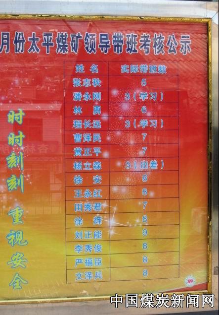 川煤攀煤公司太平矿根据矿井安全生产实际,制定了严格的领导下井带班责任管理处罚规定和考核办法,要求领导干部在做好正常跟带班的同时,还要把走动管理和隐患排查处理落到实处,确保下井带班质量。图为该矿领导干部入井公开栏