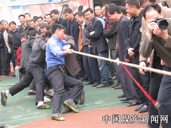 4月15日,是白沙矿区第二十一个采掘工人节,街洞矿业公司举行了一场采掘工人拔河赛,来自各矿6个采掘工人代表队参加了角逐,茶塘矿掘进队摘得了桂冠。现场氛围热烈,吸引了众多观众。你瞧,比赛队员多么卖力!
