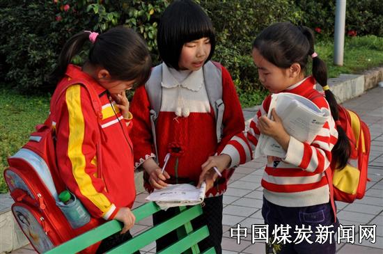 这几个小姐妹们放学后一边等着在城里上班的妈妈回家,一边在矿区广场上做作业