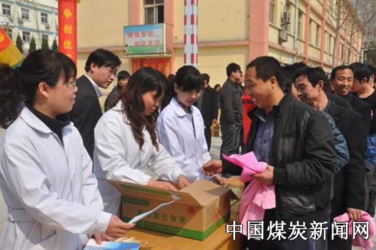 “三送”活动中为一线职工发放了安全传单、安全毛巾鞋垫、平安果、香皂等生活用品和春季预防疾病常用药品。现场还开设了健康会诊台,为大家坐诊,检查健康,社区工作人员嘱咐大家要注意安全生产,用自己的实际行动,为集团公司“三年三步走”战略目标和陶二矿的发展做出新的贡献。