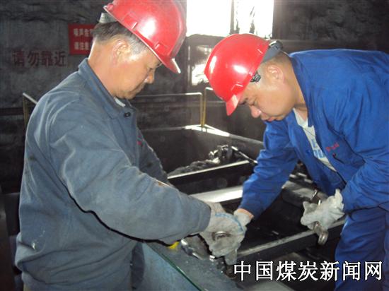 下午4点,装车队进行到了今天的最后一项检修工程-----703#刮板机更换大链、刮板、机尾滚。在联系好调度不影响装车的情况下,由工长武平生办理好停电手续,工人师傅们负责检查好所需工具:扳手、梅花扳、撬棍、麻绳、导链、绳环等。在所有准备工作就绪的情况下,队长王耀清率领参检的员工们,明确分工,紧锣密鼓的干起来,参检的工人有的松螺丝,有的拆刮板,有的拿导链准备拆下机尾辊;检修现场的各项工作都在紧张有序的进行着。小徒弟王鹏云、王成在师傅景德全的带领下顺利的完成了此次检修任务,从中积累了丰富的实际操作经验。