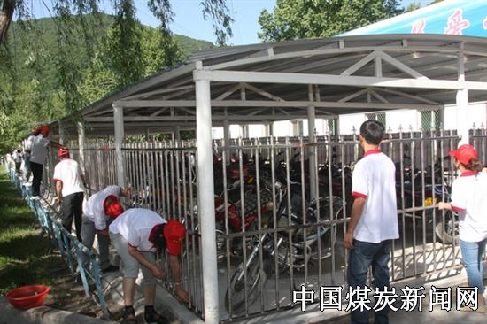 ![]() 当清晨明媚的阳光撒满矿区,矿团委组织十几名来自全矿各条战线的青年志愿者带着抹布、脸盆和笤帚等工具来到矿井口前的摩托车棚,彻底清理卫生死角,大家擦的擦,扫的扫,不到一会儿功夫,就让摩托车棚的面貌焕然一新,也让过往的职工眼前一亮。