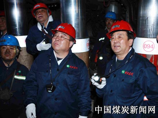 ![]() 同煤集团董事长张有喜向杨绍清介绍综采工作面安全生产情况