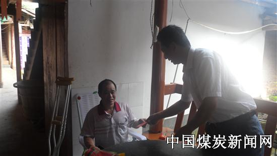据悉,该矿此次慰问活动共走访了6个困难职工,让广大职工真正感受到企业大家庭的温暖,充分体现了党组织对困难职工的关心和爱护。图为该矿林书记为困难职工送上慰问金。