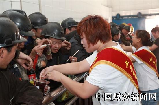 【本网讯】6月23日(端午节)下午,陕西陕煤铜川矿业公司金华山矿副立井口热闹非凡,该矿组织开展的“米粽送矿工、安全记心间”等安全系列活动正在激情上演,让职工感受到了亲人的嘱托,安全快板把安全理念播撒心中、杯杯绿豆汤让矿工感受到阵阵凉爽…… 由矿安质科、矿工会等部门组织的安全文艺演出拉开了活动的帷幕。安全协管员身披绶带,在副立井口形成一道亮丽的风景线。女工们自编自演的安全小快板寓教于乐,使职工们在笑声中感受到安全的严肃和执着;安全演讲声声震撼着在场的矿工,洗涤着干部职工的心田;期间,穿插着安全知识有奖竞答,答对者获得一份小小的纪念品。精彩表演博得大家的阵阵掌声。 排队入井的时候,许多职工还沉浸在精彩的节目中。女工们把早已准备好的礼物——飘香的米粽、象征安全“零”目标的圆圆鸡蛋、清凉的绿豆汤等一一送到干部职工的手中。特别是绿豆汤杯子上的安全小常识分外醒目,让职工们重温安全知识,把安全法规装进心里,让安全理念植根脑海,肩负亲人安全嘱托,警钟长鸣,时刻牢记安全生产,构建安全和谐新矿区。