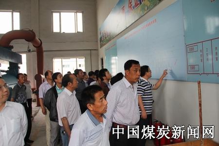 当天上午,总工程师班一行41人在自治区安培中心时文玉老师和张强老师的带领下,在豫新公司机关大会议室受到了豫新煤业副总经理关建国、总工程师赵云峰等公司领导的热烈欢迎。赵云峰首先向总工程师班调研组介绍了豫新公司矿井生产、管理理念等有关总体情况。随后,总工程师班一行详细参观了豫新公司的瓦斯发电厂,并就有关专业问题与豫新公司相关负责人进行了交流。最后,调研组一行深入矿井,全面观摩了豫新煤业具体的井下生产情况。 上 图总工程师班一行正在参观豫新煤业瓦斯发电厂。