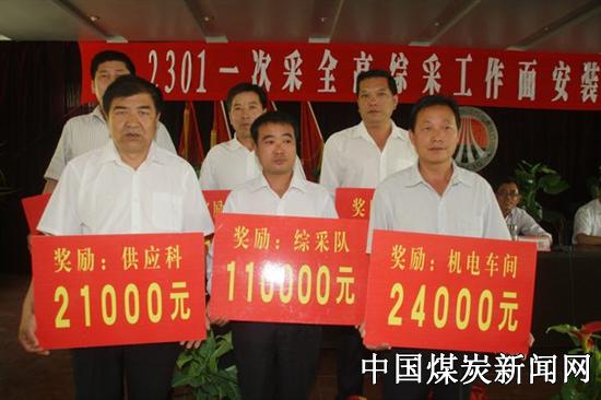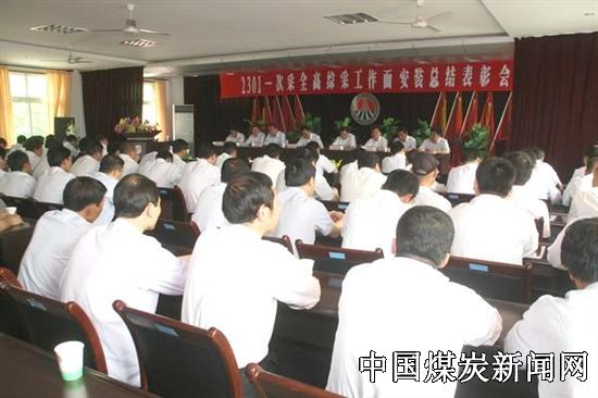 会议由该矿党委副书记、工会主席苟胜利同志主持。轰鸣的鞭炮声伴随着《咱们工人有力量》雄壮有力、催人奋进的乐曲声拉开了大会的序幕。该矿副矿长白永筱同志在会上做2301工作面安装工作总结报告。第一副矿长潘成忠同志宣读了关于对在2301工作面安装工作中表现突出的单位和个人进行表彰的决定。在欢快的乐曲声中,该矿党政领导为在此次2301工作面安装过程中表现突出的先进集体颁发了奖金。随后,综采队队长王留河、运输区党支部书记高金瑜、生产科主管副科长高永强分别代表参与此次工作面安装的单位和工程技术人员在会上发言,介绍了在此次2301工作面安装工作中超前思维、克服困难取得的先进经验,表达了投身煤海、建功立业的信心和决心。