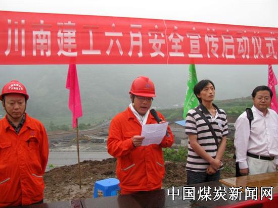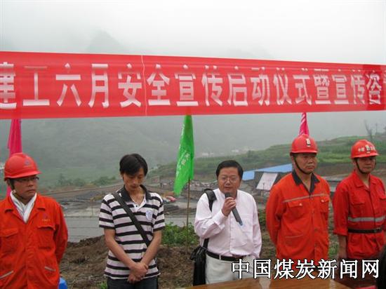 川南建工新维项目部负责人李贵洪代表施工方发言,他指出:“安全生产月”已在全国开展了十一个年头,今天在这里开展“安全生产月”活动启动仪式,其目的就是营造“以人为本,关爱生命”的良好氛围,拒绝违章,减少和消灭事故的发生,目前,井下施工遇到了前所未有的困难,矿山压力显现严重,技术部门要敢于攻坚克难,在技术上下功夫,做好软岩支护工作,确保矿井建设安全稳定发展。