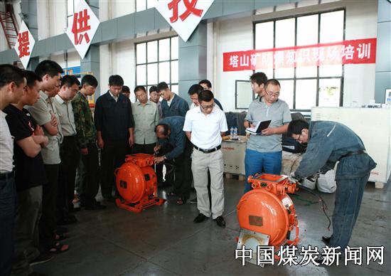 7月13日上午,塔山矿机电管理部举办防爆知识现场培训,来自该矿生产一、二线单位的90余名机电技术及管理人员参加了专题培训,该矿为了加强井下电气的安全管理工作,强化机电技术人员的技能水平,从根本上消灭井下电气失爆现象,杜绝在生产中发生各类电气事故,有利于保证矿井安全生产顺利进行。图为:培训现场机电技术及管理人员认真学习操作过程。