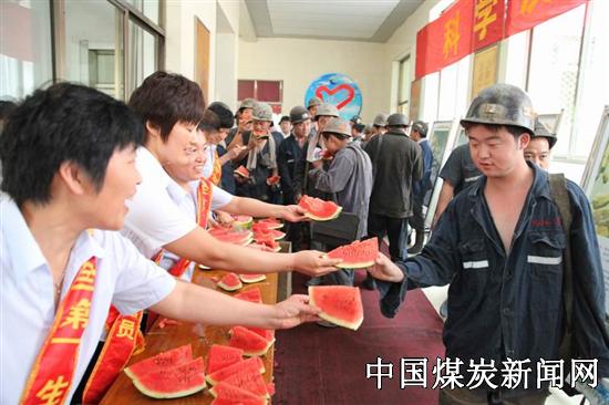 “师傅,您辛苦了!”、“吃块西瓜解解暑!”、“下井要注意安全!”。7月13日,山东能源新矿集团华丰煤矿工会组织女工家属协管员,带着西瓜、绿豆汤,赴井口开展“井口送清凉、亲情嘱安全”活动。 随着暑天高温的到来,持续的高温对矿井安全生产带来了不利的影响,该矿家属协管会积极行动起来,充分发挥“半边天”的作用,将一块块清凉甘甜的西瓜,一碗碗解暑降温的绿豆汤,一块块擦汗的毛巾,送到井下职工手上,让他们既品尝到高温下的“清凉”,又感受到亲人无微不至的关爱。职工们纷纷表示,在生产过程中一定要提高自身安全防范意识,克服麻痹松懈思想,确保安全生产。