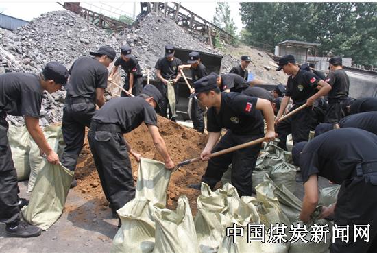 寺湾井特勤中队成立以来,积极组织队员集训,并在完成本职工作的基础上,积极承担矿上的急、难、险、重等各项任务,截止目前,该矿特勤中队共组织参加义务劳动82人次、突击清理“雨季三防”泄洪涵洞40余米,填装防洪沙袋400余袋,清理垃圾20余吨,修剪花草56米,为矿区的安全生产作出积极贡献。图为该矿特勤中队义务劳动现场。